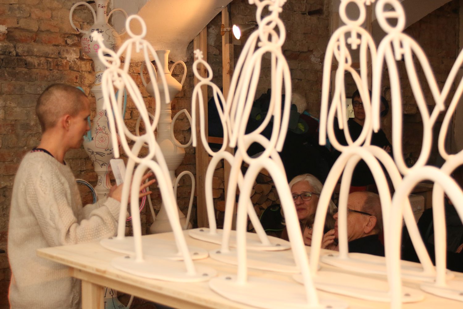 Wir zeigen Arbeiten, die sich mit der Sichtbarkeit, dieses Problems, aber auch mit den sozial konstruierten Zuordnungen und Erwartungshaltungen an Geschlechter und Künstler*innen beschäftigen.